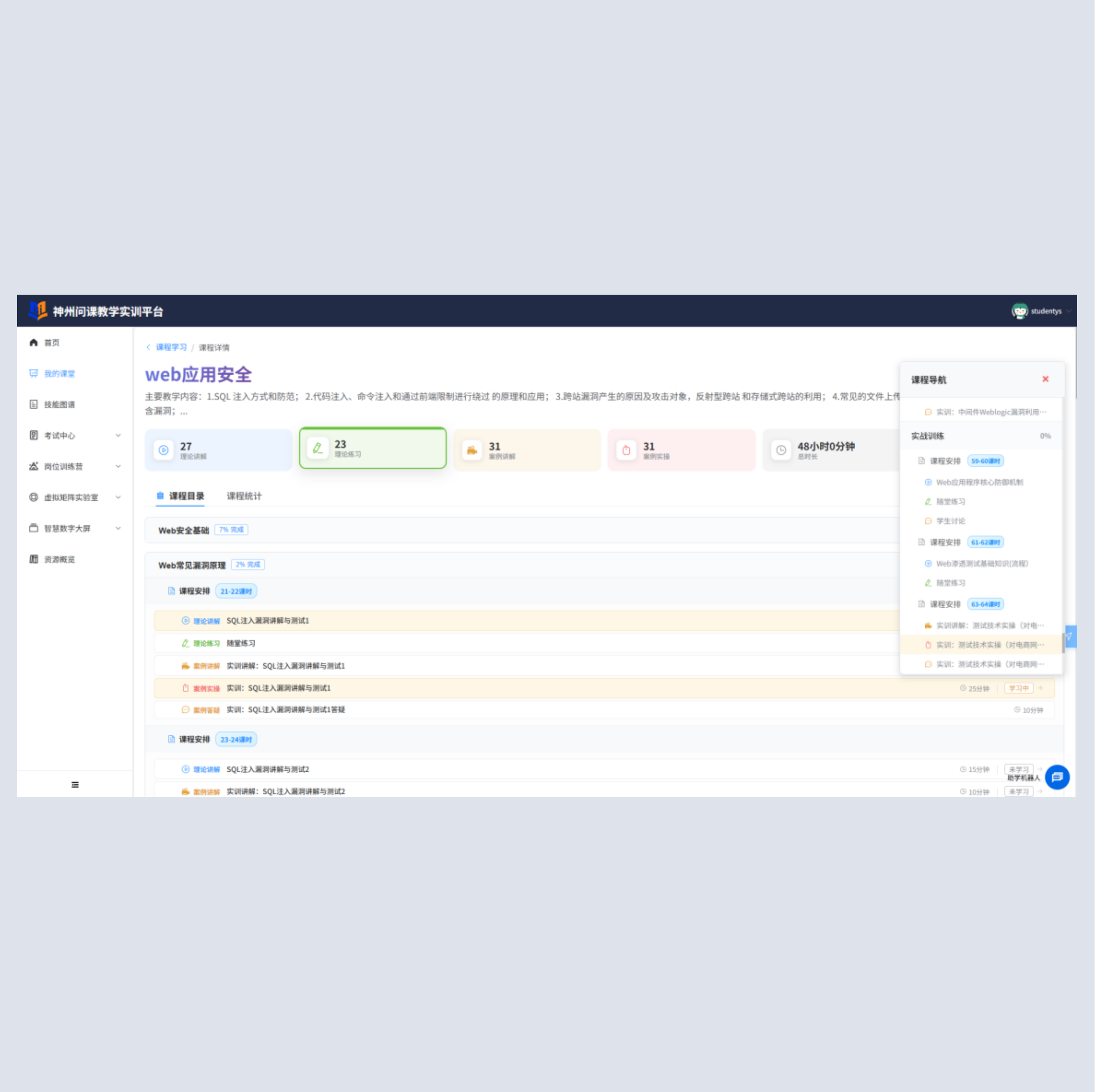 奥林匹斯之门 pp电子奥林匹斯之门问课教学实训平台是一款深度聚焦中高职院校及应用型本科计算机相关专业的全流程在线学习、实训与测评一体化平台。平台以培养网络技术、信息安全、软件开发、大数据、人工智能等新一代信息技术领域的高素质岗位人才为核心目标,全面引入与各行业岗位直接对接的全套专业课程体系与岗位实战课程,精准匹配企业对技能型人才的核心要求。