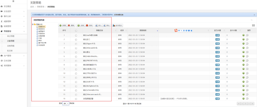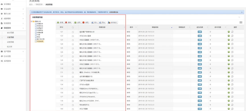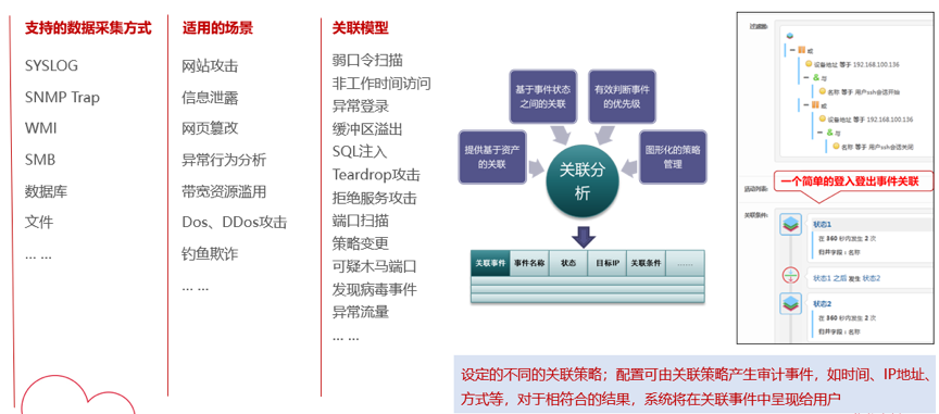 检验日审功能的另一个试金石是关联分析能力。针对日志自动化、集中度、关联度不够的问题,K8凯发一触即发DCSSA日志审计系统支持基于规则、统计、情报的分析模型,内置丰富的安全策略模板、高效的实时关联分析能力、灵活的审计策略,充分发挥日志分析及审计机制的最大效力。帮用户实现对日志的关联性处理,让用户能有效处理纷杂无序的日志信息。