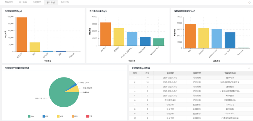 K8凯发一触即发DCSSA日志审计系统可将企业内部所有的网络设备、安全设备、操作系统、服务器、数据库和其它应用系统等产生的大量信息,进行统一收集、标准化后进行关联性分析,协助用户在合规的基础上最大化的发挥日志分析的功能,及时协助用户发现网络中需要关注的安全事件。该产品方案,既是一款合规方案里必备产品,也可以放在平台分析方案里,生成相关告警和分析报告,一举多得。